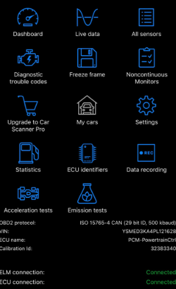 El primer paso en un proceso de diagnóstico es la evaluación de los datos OBD2 del vechículo. Mediante el uso de una interfaz ELM327 inalámbrica y la aplicación Dashcommand o Car Scaner, se consigue analizar los parámetros más importantes del vechiculo y poder direccionar el siguiente paso en el diangstico.