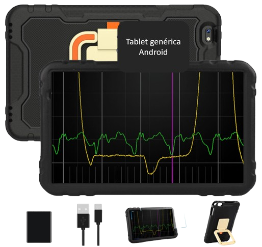 Tanto el escáner como el osciloscopio requieren de una tablet Android, con al menos 3 GB de RAM como la de la siguiente imagen. Te podemos proveer de esta tablet a un precio muy conveniente.